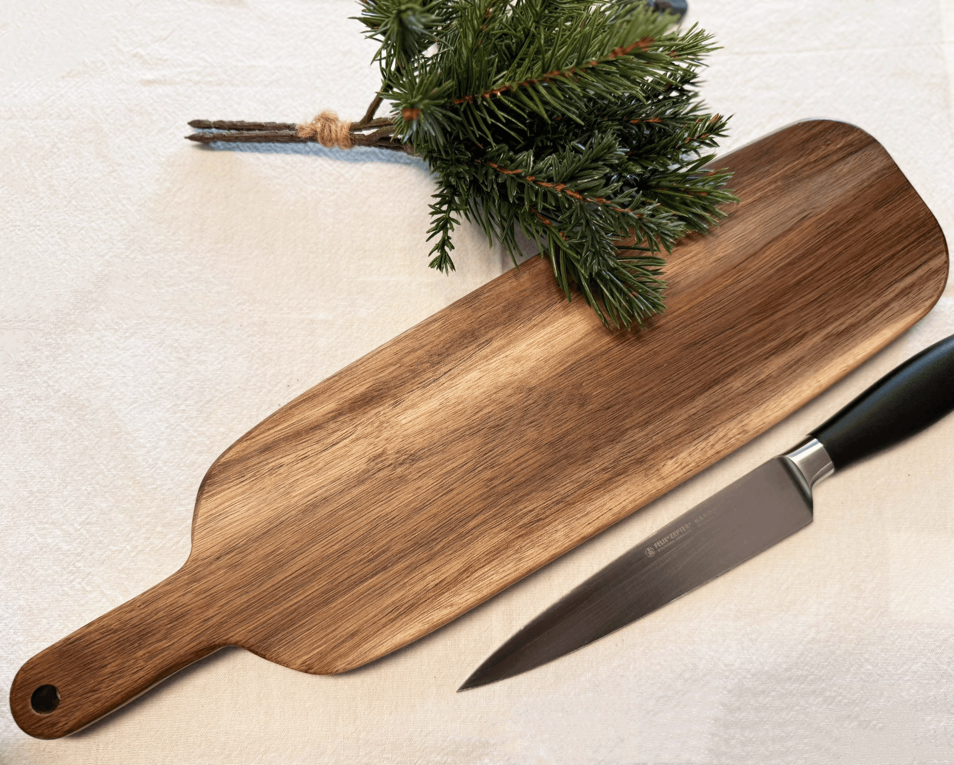 Grosses Schneidebrett aus Akazienholz, ideal zum Schneiden, Servieren oder für dekorative Küchenpräsentationen. Die schöne, natürliche Maserung macht jedes Brett einzigartig. Durch die lange Form eignet es sich perfekt für Apéros, Brot, Fleisch oder Käse.