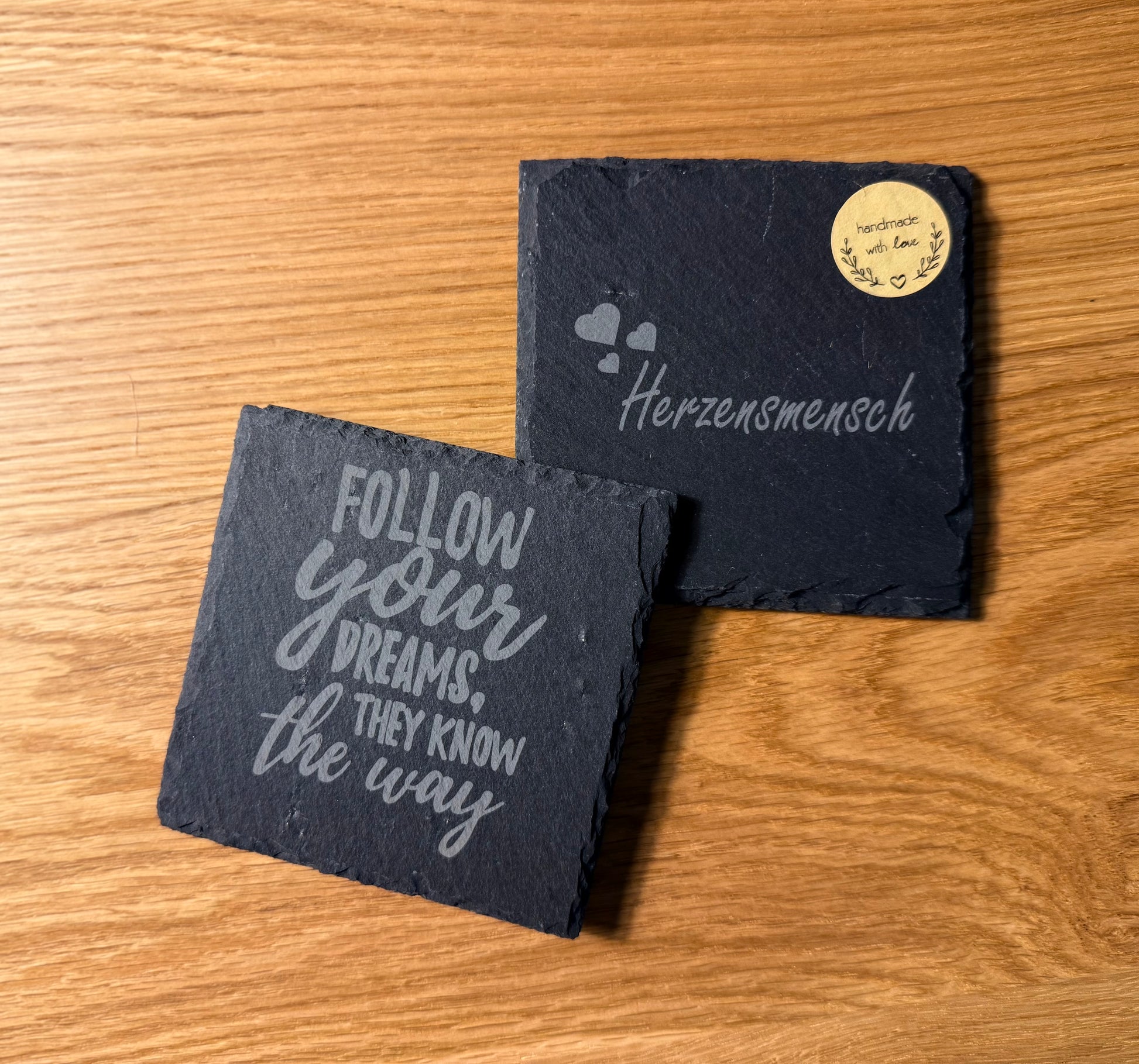 Info: Bitte beachten Sie, dass die Gravur je nach natürlicher Schieferstruktur leicht variieren kann. Jede Gravur ist ein Unikat und macht Ihr Produkt besonders.